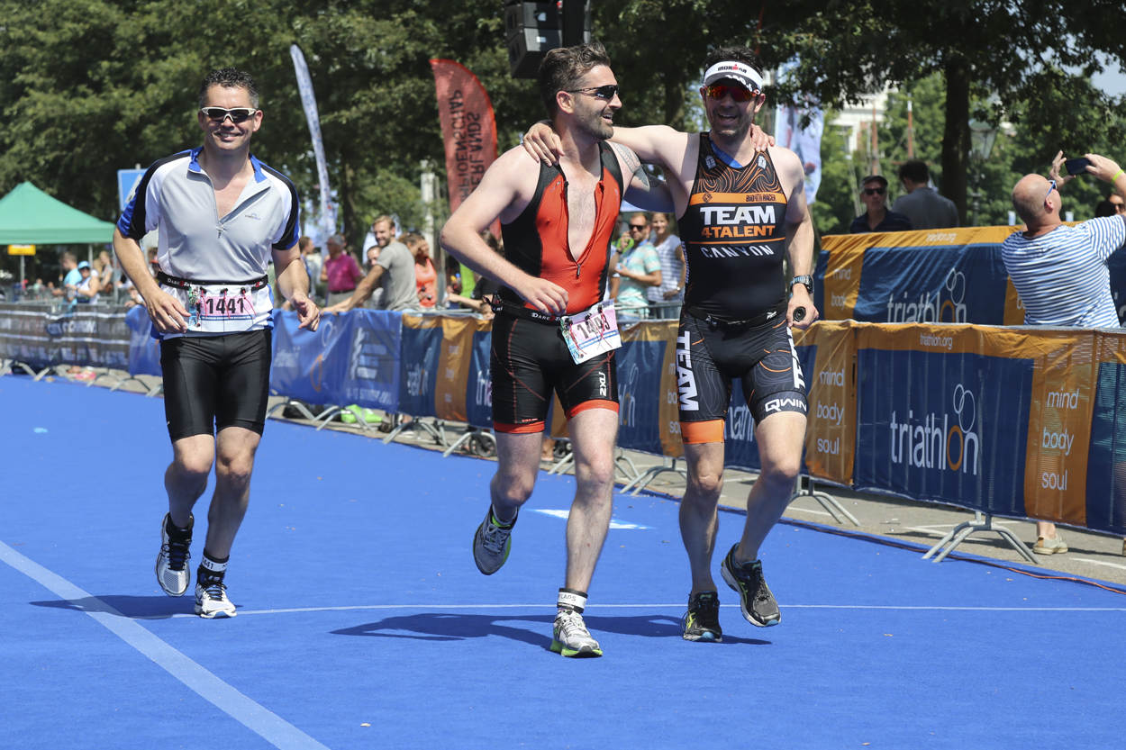 Op 24 juli maakte hij zijn debuut op de triatlon. Geflankeerd door Wouter. “We zwommen zij aan zij. Ik keek hem recht in het gezicht en we moesten allebei breeduit lachen.” Het was een achtbaan van emoties, 750 meter zwemmen, 20 kilometer fietsen en 5 kilometer lopen lang. Op het eind van de loopronde zag hij het Erasmus Ziekenhuis.