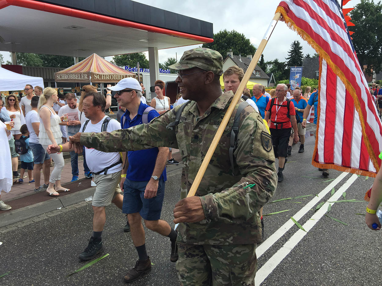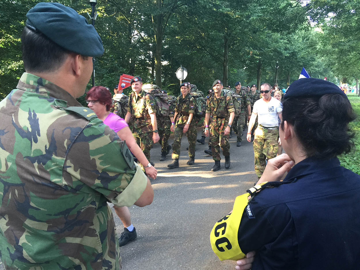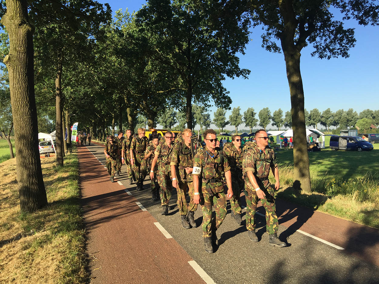 Bijna 5.500 militairen uit 31 landen trotseerden de elementen in de omgeving van Nijmegen. Ze kregen ook enkele stortbuien te verduren, maar ze buffelden onvermoeibaar door. De detachementen en individuele lopers namen deel aan een bijzondere editie; de grootste meerdaagse wandelprestatietocht ter wereld vond voor de 100ste keer plaats. De allereerste editie was in 1909 met ruim 300 lopers. Toen deden bijna uitsluitend militairen mee.
