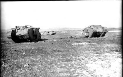 Met 476 Mark IV tanks is de Britse aanval bij Cambrai op 20 november 1917 de eerste grote tankslag. In eerste instantie verloopt de aanval zeer effectief. Overigens is dit ook de eerste slag waarbij de tanks een duidelijke tactiek gebruiken. In formaties van 3 rijden ze op de vijand af. De 1 e tank steekt de loopgraaf over, slaat linksaf en schakelt met mitrailleurs de tegenstander uit. De 2 e doet hetzelfde bij de volgende geul en de 3 e tank neemt de 3 e onder vuur. De infanterie schakelt alle overgebleven vijanden uit. De geallieerden winnen flink terrein, tot op 30 november de Duitse tegenaanval begint. Die neemt een groot deel van het gewonnen gebied weer terug.