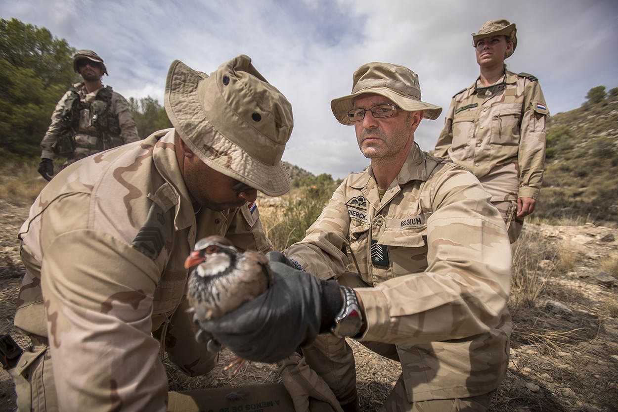 Vliegend personeel van F-16’s, helikopters en C-130’s leerde eind september hoe ze moet overleven in woenstijnachtige omstandigheden als ze zijn neergestort. Deze cursus is opgezet omdat vliegers en loadmasters steeds meer opereren in gebieden als in Mali en tot voor kort het Midden-Oosten. In Zuid-Spanje krijgen deze luchtvarenden les van instructeurs van de SERE-school op Gilze-Rijen.