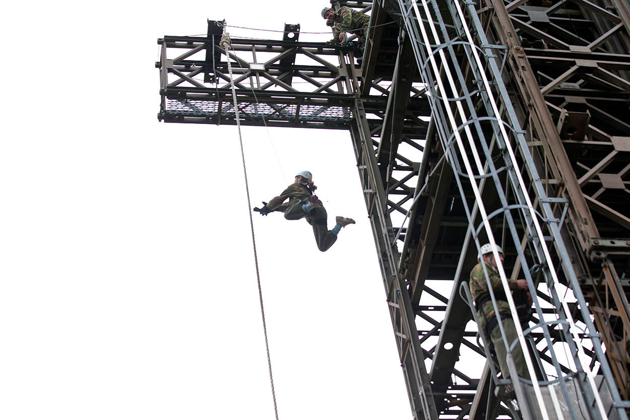 Met een kreet stort Floris van Zijp zich in de diepte. Een fractie van een seconde later vinden zijn handen het touw en bungelt hij een metertje of 16 boven de grond. Dan laat de kliminstructeur van de School Luchtmobiel de jonge liberaal aan het veiligheidstouw naar beneden zakken. Van Zijp: “Of ik het spannend vond? Niet te zuinig. Ik heb het niet op hoogtes. Als je me gisteren had gezegd, dat ik nu van een klimtoren zou springen, had ik je voor gek verklaard.”
