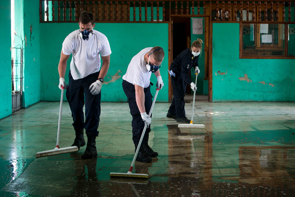 Het ziekenhuis in de stad Les Cayes heeft de orkaan relatief onbeschadigd doorstaan. Omdat dit hospitaal een regionale functie heeft voor het rampgebied is besloten te helpen bij de reparatie van het schoonmaken van een ziekenzaal. Hierdoor is er plek voor meer patiënten.
