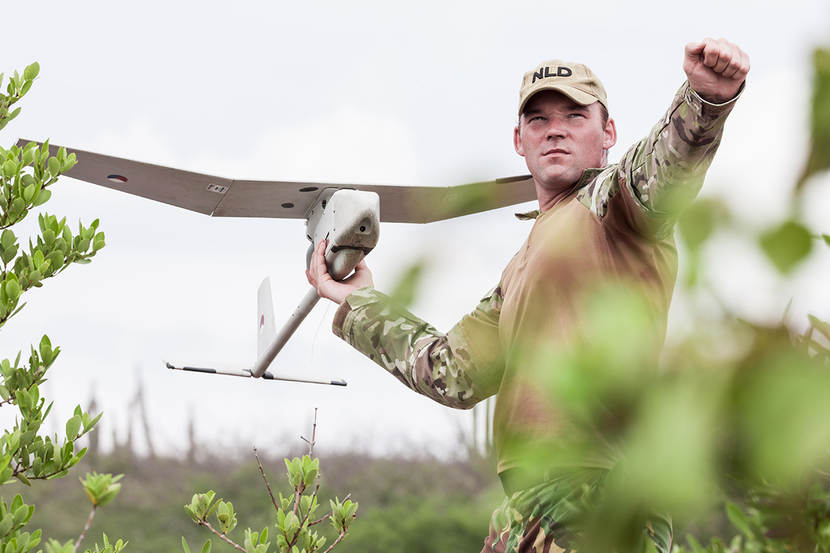 De Nederlandse en Belgische militairen zullen tijdens hun A&A-werk niet zo dicht op het front gaan zitten als de Amerikanen, maar juist op een veiligere afstand. Om toch zicht te krijgen op wat er op en rond het slagveld gebeurt, zullen Nederlandse troepen gebruik maken van Unmanned Areal Vehicles (UAV’s), in de volksmond drones genoemd. Ook zijn Raven-systemen bedoeld om de eigen omgeving in de gaten te houden, veiligheid voor alles. De Amerikaanse A&A-teams gebruiken ook drones. “Het is niet alleen ter bescherming van de eigen troepen. Maar ook om te bepalen hoe ver ISIS-strijders zich van de burgerbevolking bevinden, zodat de Irakezen hier rekening mee kunnen houden.”