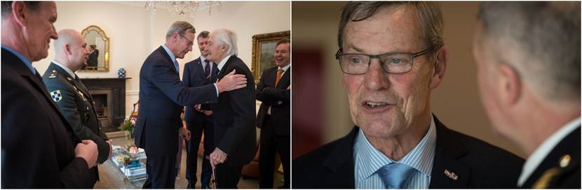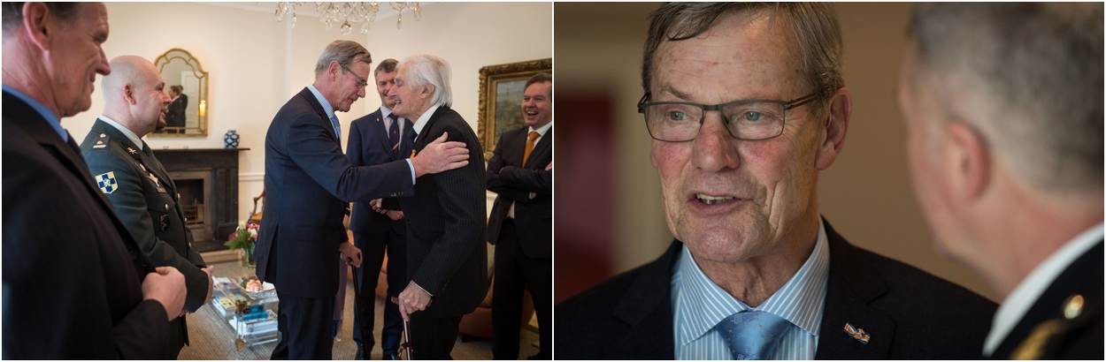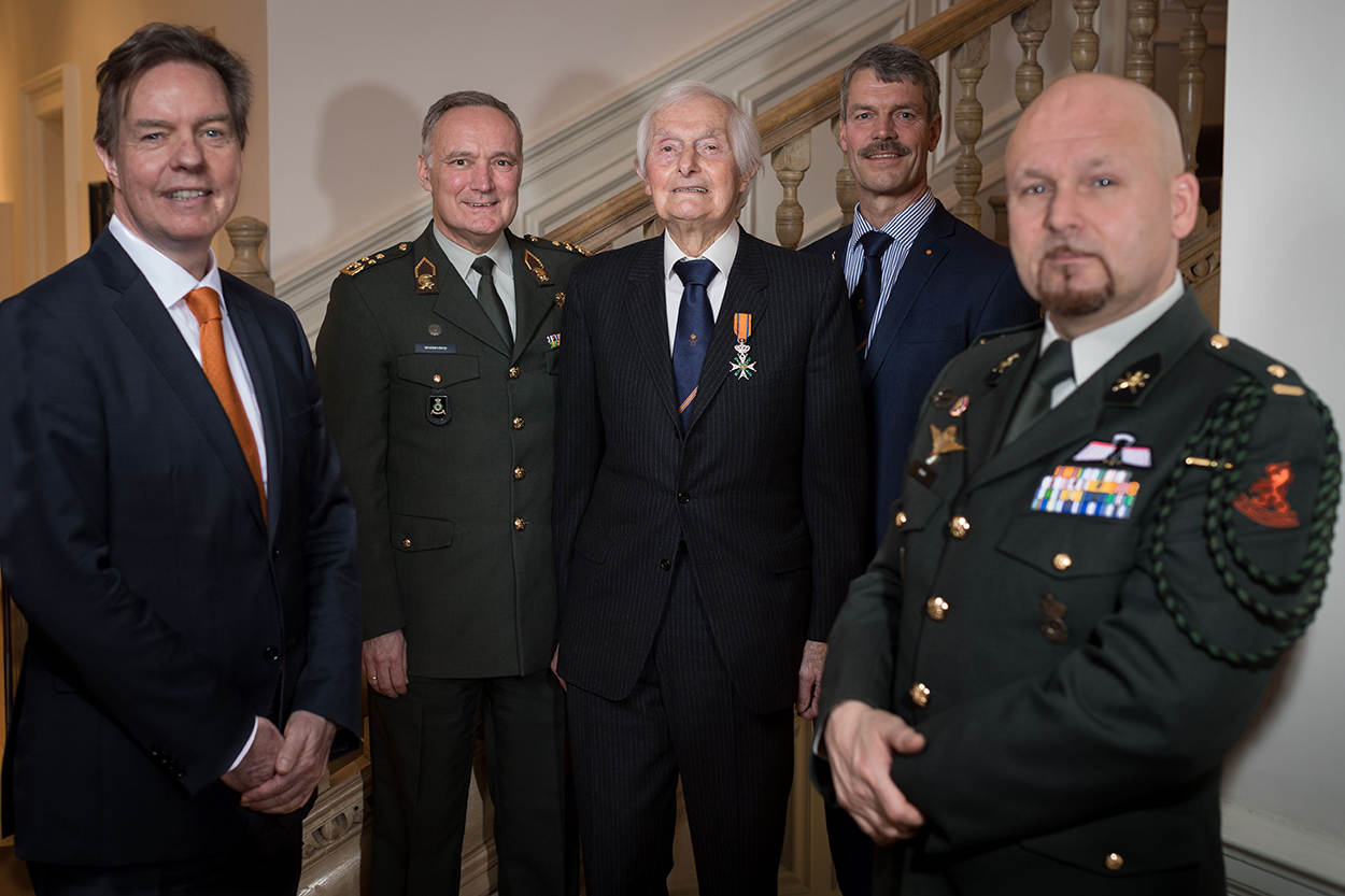 Foto boven: Ambassadeur Simon Smits, generaal Tom Middendorp, Ridder MWO Ken Mayhew, voorzitter van het Kapittel der Militaire Willems-Orde generaal-majoor buiten dienst Henk Morsink en Ridder MWO majoor Marco Kroon.