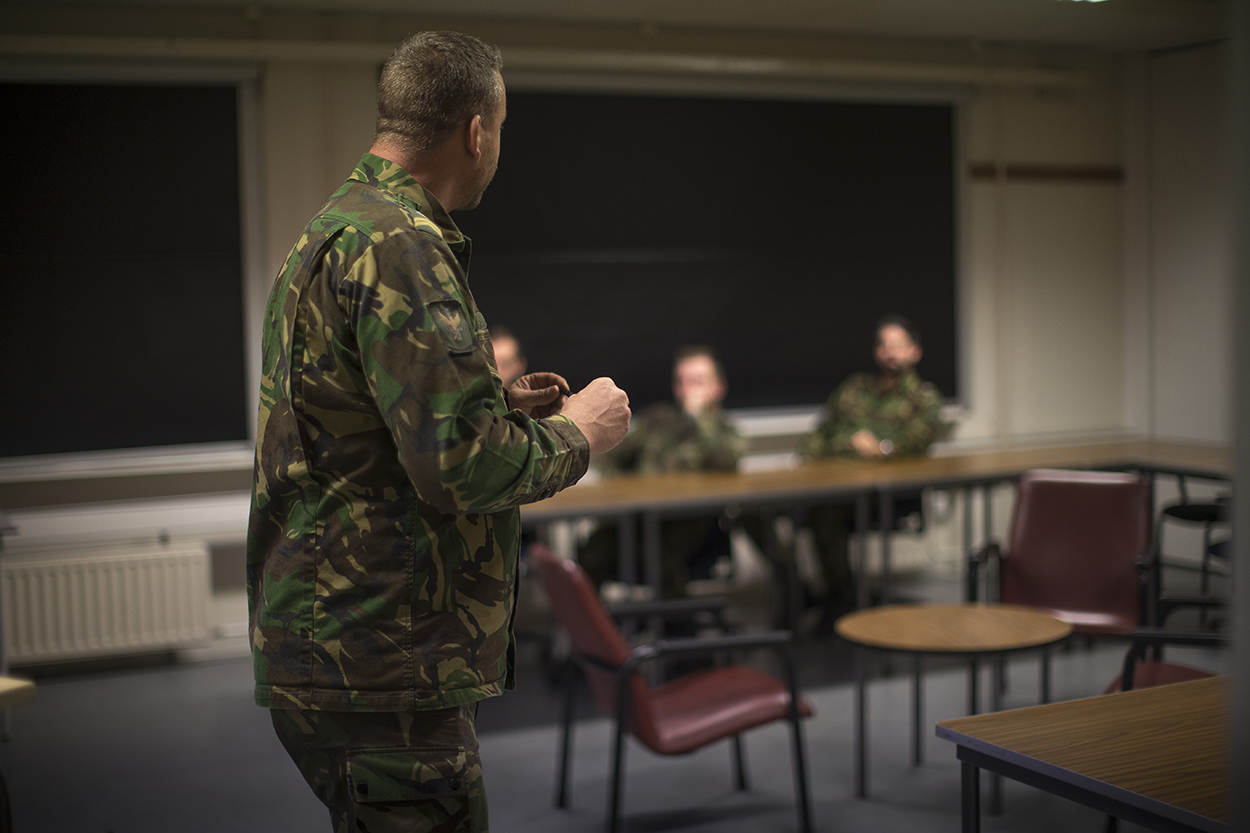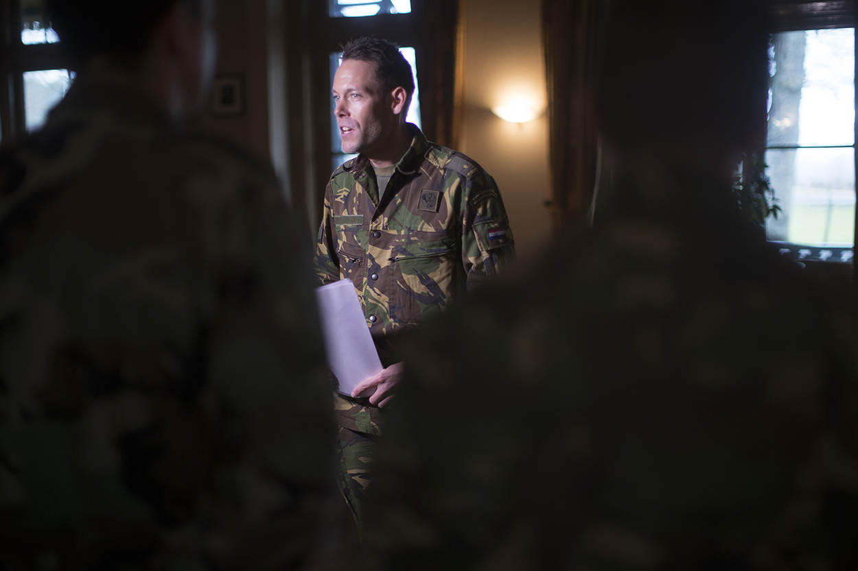 Mede vanwege het grote afbreukrisico, voor zowel Defensie als Nederland, stellen ze bij ‘105’ hoge eisen aan het personeel. “Potentiële nieuwkomers moeten geen ethische problemen hebben met het langdurig vrijelijk met de werkelijkheid omgaan”, vertelt Bas. “Daarbij vraagt het werk veel van mijn personeel, ook geestelijk; het is niet iedereen gegeven om daar goed tegen te kunnen”, weet hij. Om potentiële nieuwelingen te informeren over wat het werk precies inhoudt, wordt op thuisbasis ’t Harde regelmatig een voorlichtingsbijeenkomst gehouden. “Voor de teams zijn we vooral op zoek naar een zo groot mogelijke verscheidenheid aan personen”, vervolgt Guus. “Door verschillen in karakters en persoonlijkheid past de één beter bij een persoon waarop de focus ligt, dan de ander; warlord, gewone man, burgemeester.” “Een belangrijke eigenschap kan zijn, dat iemand streetwise is”, voegt Bas toe. “Maar ben je ook mensgericht, analytisch onderlegd en in staat om anderen te beïnvloeden, dan zou je bij ons een kansje kunnen wagen.”