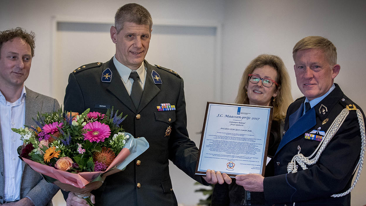 Sijnhorst kreeg de prestigieuze prijs omdat hij zich bijna 35 jaar verdienstelijk heeft gemaakt voor het militaire judo. "Fred is iemand die echt het verschil maakt", zei brigadegeneraal (marechaussee) Ronald Harmsma, die de oorkonde overhandigde.