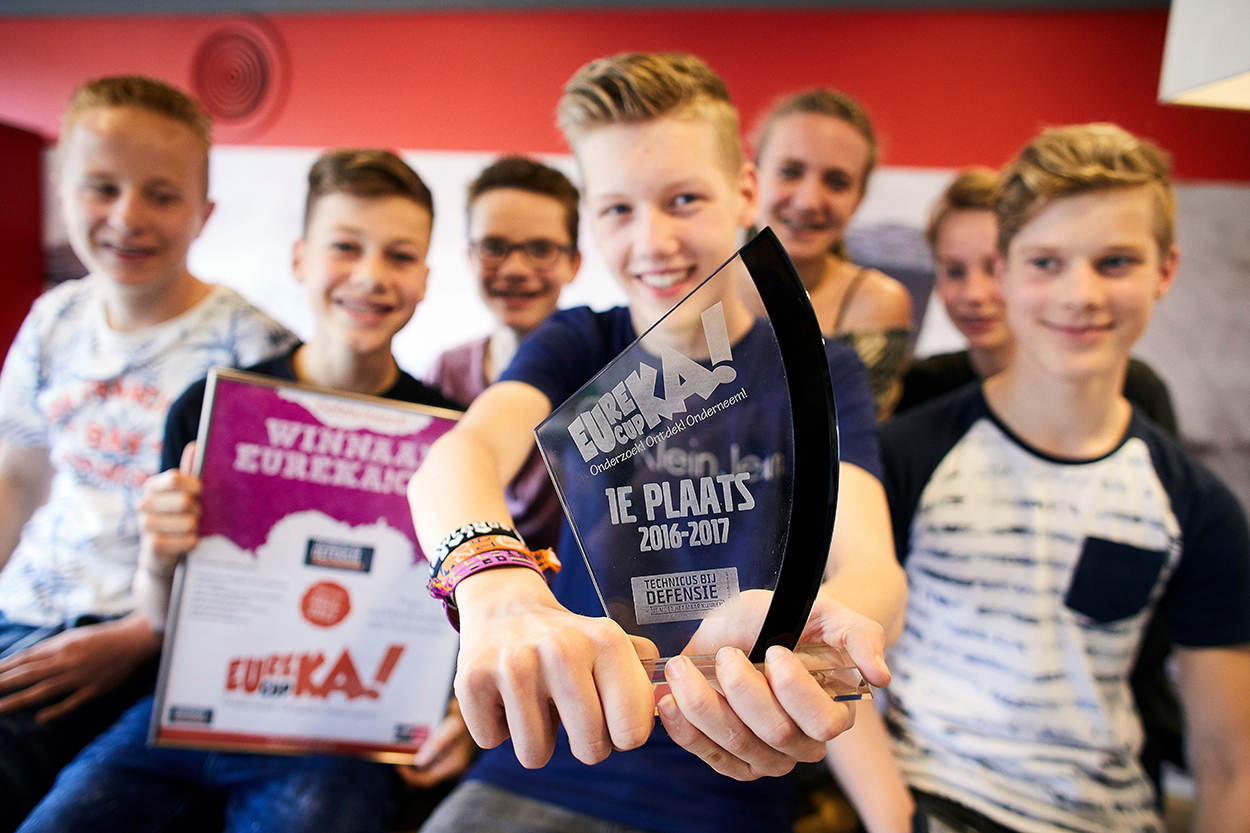 Aan de voorrondes van de Eureka!Cup deden vele tienduizenden leerlingen mee. Tijdens de finale op 10 mei in het Nationaal Militair Museum in Soesterberg waren er nog 1.000 over. Zowel afgevaardigden van de krijgsmacht als een professionele jury waren lovend over het prototype van de technische tieners uit Harderwijk. Het team ging er dan ook met de hoofdprijs vandoor.