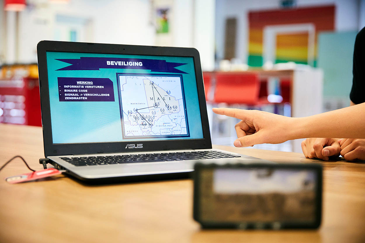 Zijn klasgenoot Lennard (14) voegt toe: “En zo kun je dus op een veilige manier, geheime informatie doorgeven. Zoals een stamoudste of burgemeester die contact zoekt met militairen vanwege een aanslag of bezetting.”