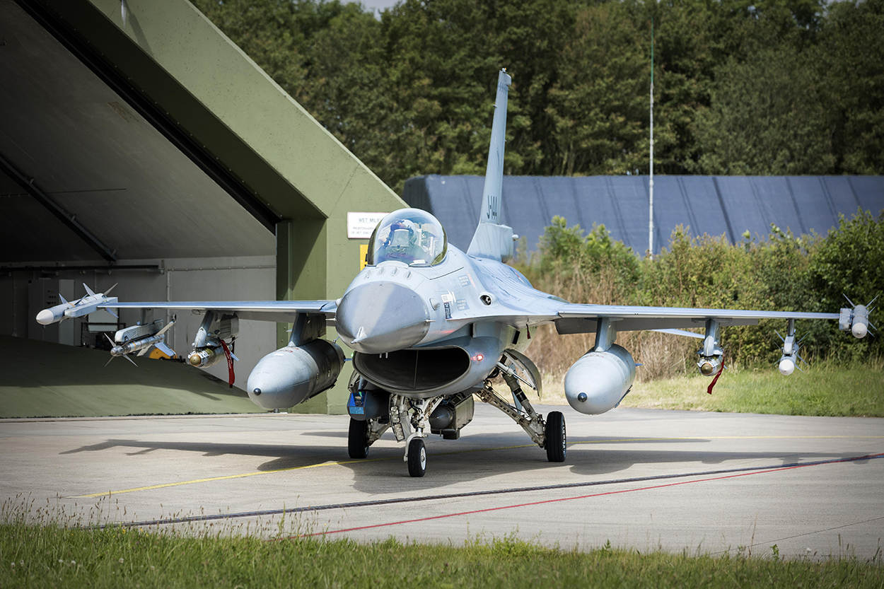 Met oorverdovend geraas kiezen 4 F-16’s het Friese luchtruim. De vliegers moeten extra gas geven en dus meer herrie maken, omdat de kisten volhangen met geleide bommen en luchtdoelraketten. Deze take off met scherpe munitie was afgelopen dinsdag het slotstuk van een alarmeringsoefening voor de luchtcomponent van de Very High Readiness Joint Task Force (VJTF), de ‘brandweer’ van de NAVO. Het is de eerste keer dat Nederland deelneemt aan de zogeheten VJTF Air