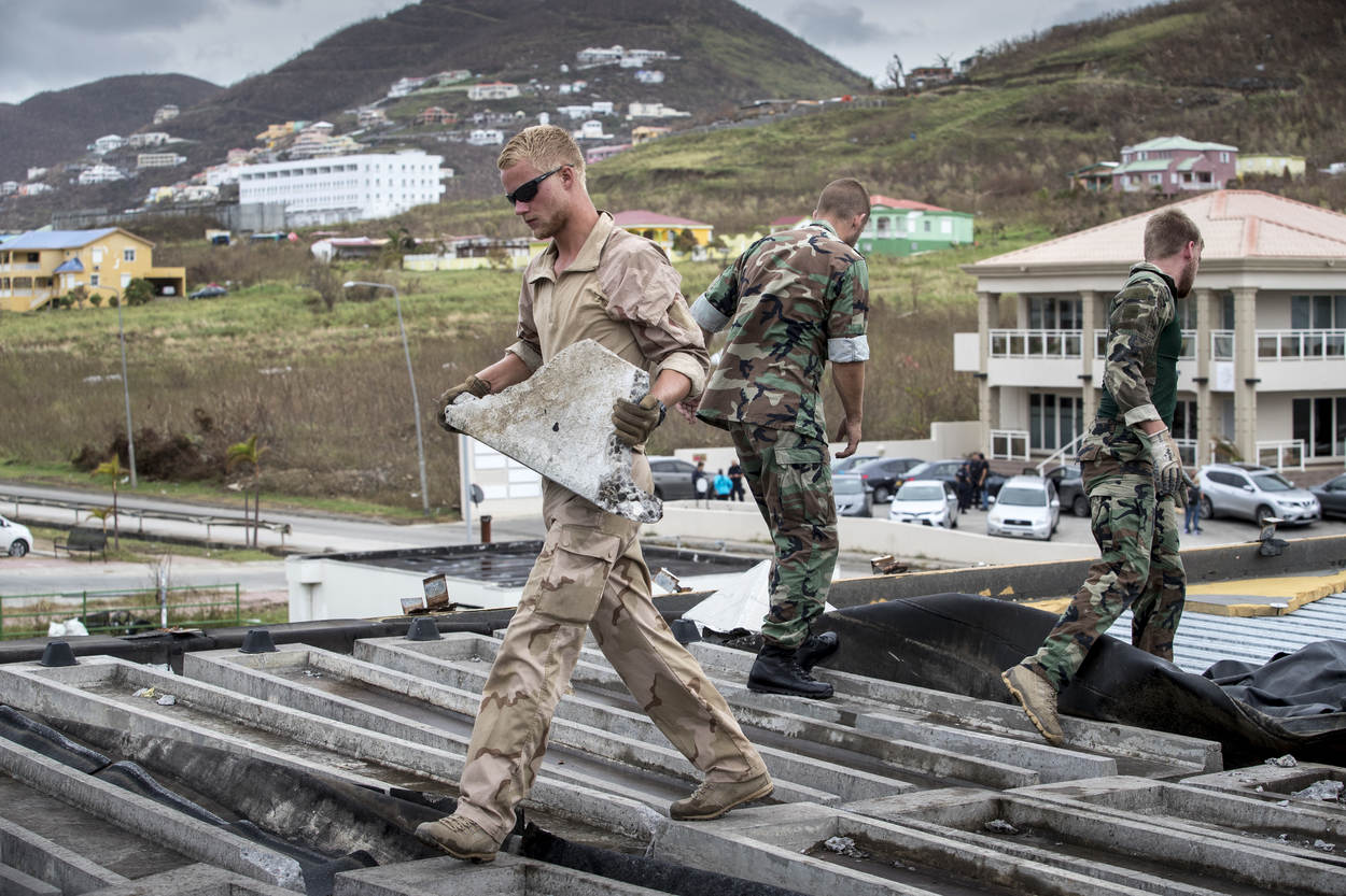 Hun improvisatietalent kunnen ze nu botvieren op het lekkende dak van het ziekenhuis. “Dit is een van de belangrijkste gebouwen op het eiland. Zo'n dak moet dicht”, zegt Harm die al op het eiland was tijdens Irma. Hij schuilde samen met mariniers in een door hem en collega-genisten stevig bevonden school. “Onze eerste taak was de schade inventariseren”, blikt hij terug. “Welke spullen hebben we nodig? Deze komen nu vanuit Nederland hierheen.”