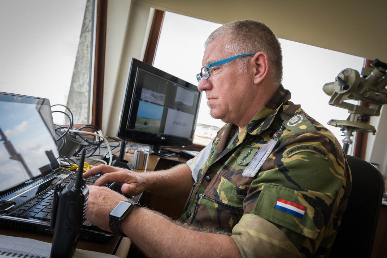 De vrouwelijke Vlaamse adjudant die vanuit de toren perfect zicht heeft op de kalme Noordzee, laat er intussen geen misverstand over bestaan: hier is haar wil wet. Tientallen meters voor en onder haar staan verschillende militaire voertuigen naast elkaar opgesteld achter de duinrand van het Belgische Lombardsijde. Bushmaster, Fennek, Boxer, Mercedes Benz 280 CDI en CV90. Vanaf deze bakken openen de landmachters het vuur op de onbemande vliegtuigjes.