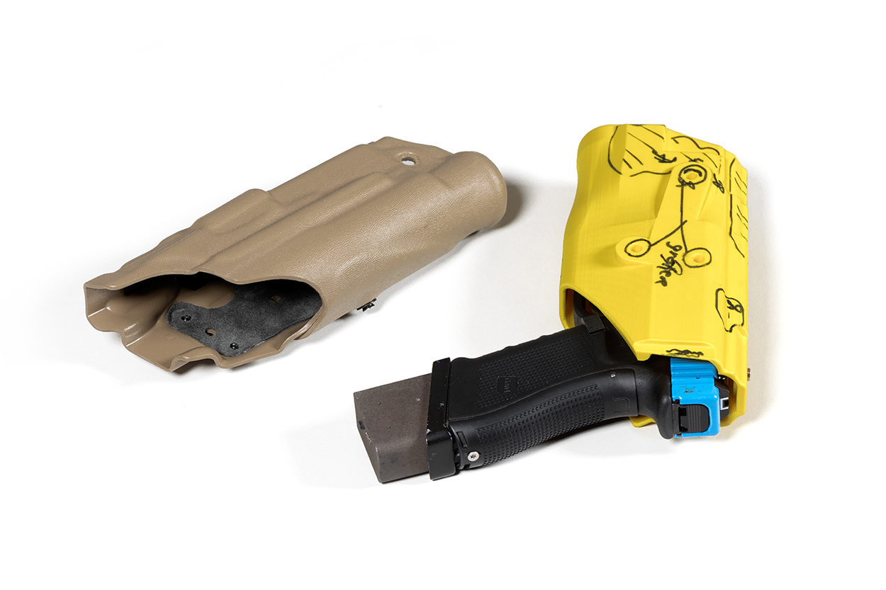Een knalgeel vierkant voorwerp ligt op zijn bureau. “Een dummy-radio”, verklaart Davy. Een paar dagen eerder uit de 3D-printer ‘gerold’. “Het Korps Mariniers schaft nieuwe voertuigen aan”, legt Davy uit. “Met ingebouwde radio’s. Maar radiosystemen bevatten gevoelige crypto. Die kan je niet zomaar naar een voertuigfabrikant opsturen. Je wilt niet dat iemand er aan gaat sleutelen of bekijkt hoe ze precies in elkaar zitten.”