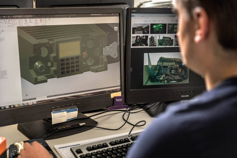 Producten maken die (tot dan) niet bestaan, dat is het werk van de pas 20-jarige Davy. Direct na de middelbare school ging hij aan de slag bij Defensie. De meeste tijd brengt hij door achter de computer; 3D-modellen tekenend. Vervolgens worden zijn virtuele ontwerpen omgezet naar producten in de ‘echte wereld’. Bijvoorbeeld met behulp van een 3D-printer.