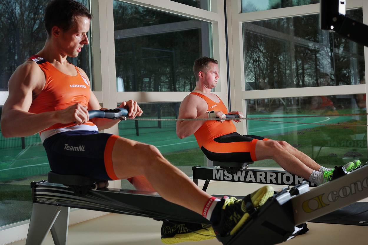 Paralympiër Corné de Koning (links) roeide 21 kilometer mee met Johan van Etten.