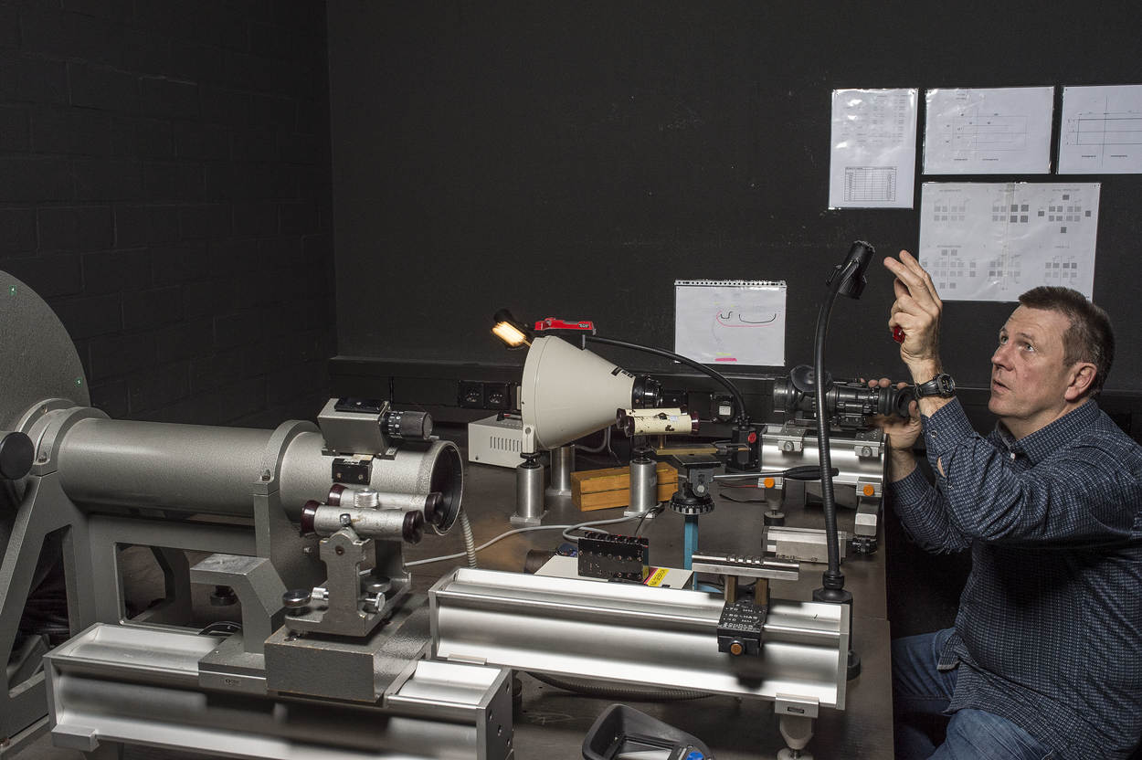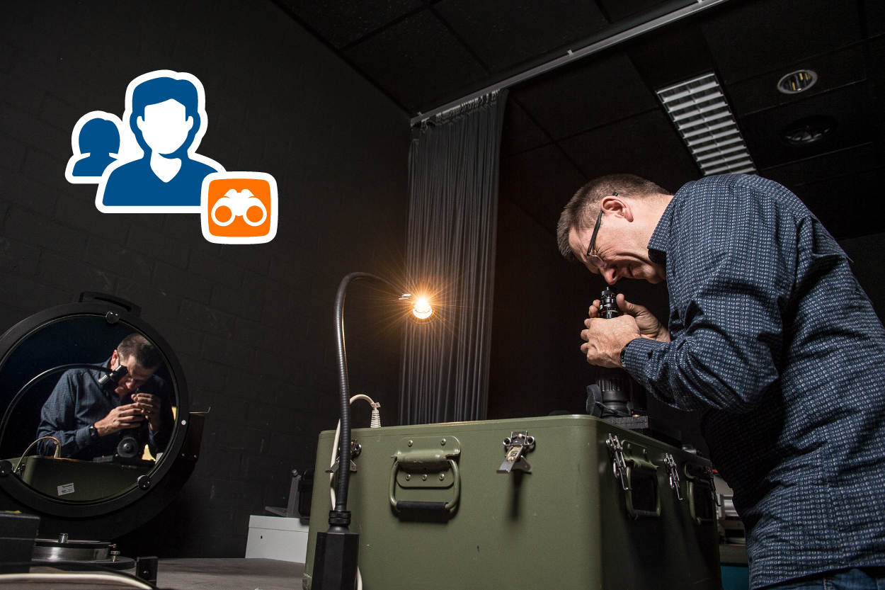 Laatstgenoemden zijn ook zijn specialiteit ‘thuis’. Op zijn werkplaats in Den Helder gaan alle zogenoemde helderheidversterkende (hv)-waarnemingssystemen van Defensie door zijn handen. Als technisch coördinator is hij degene die de laatste checks uitvoert na onderhoud, reparatie of de periodieke keuring van deze kwetsbare apparatuur.