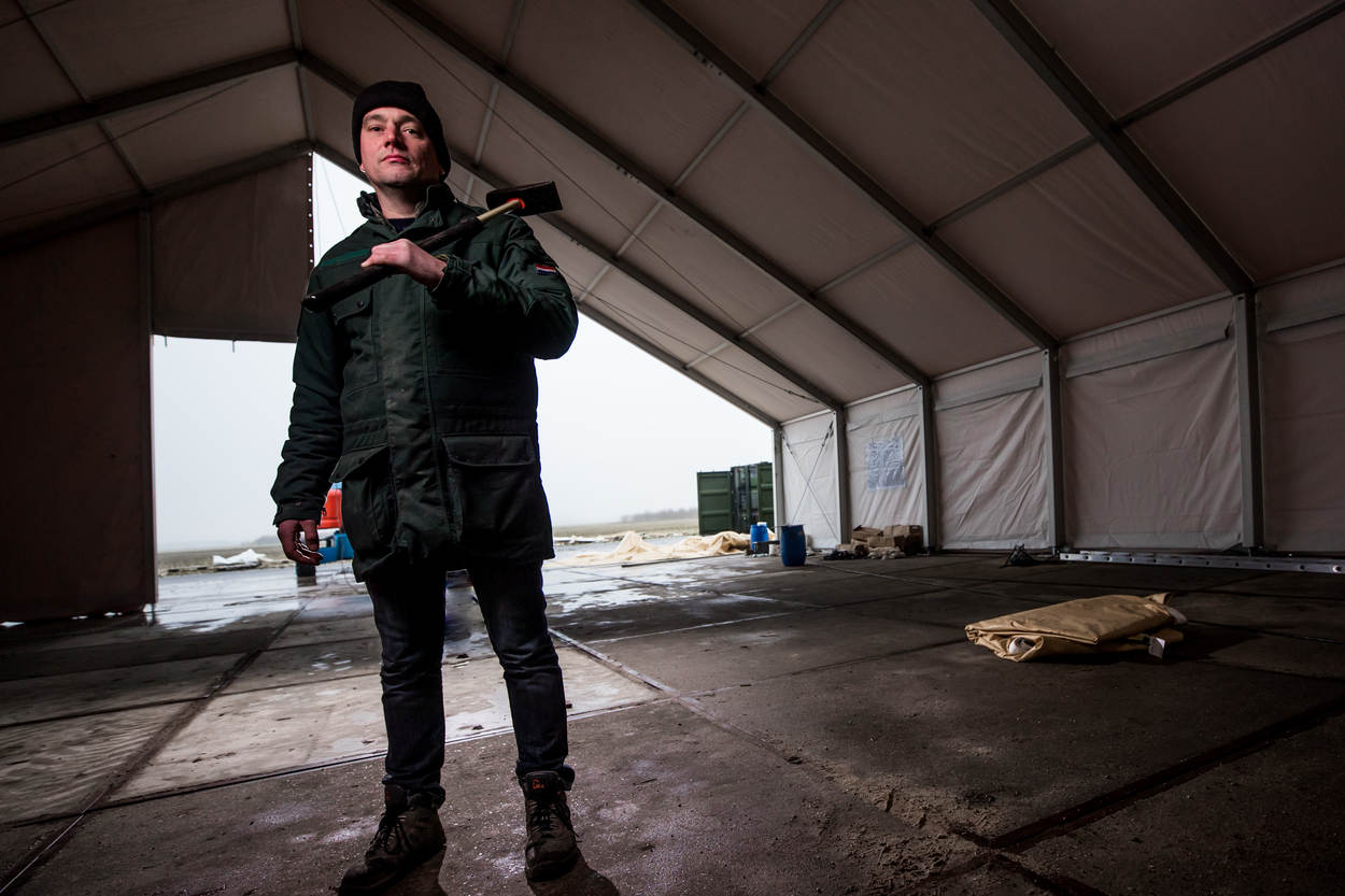 Een tentje opzetten op de camping, daar draait hij zijn hand niet voor om. Albert Roos heeft voor hetere vuren gestaan: hij bouwt tenten voor Defensie. Geen ‘simpele’ boogtenten, maar flinke shelters die jaren blijven staan.