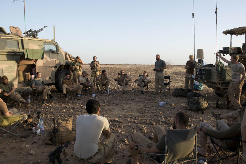 Logisch dat de Lurp daar de neus wilde opsteken. Ook al kostte het uren rijden door het woeste landschap. Daar zijn de lange-afstandverkenners dan ook op uitgekozen: ze kunnen zelfstandig optreden in onveilig gebied. Zonder ondersteuning, zonder de gemakken van een beveiligd kamp. Geen gepantserde slaapvertrekken, toilet of eetzaal met buffet, geen bar waar je cappuccino en koele frisdrank koopt. In de woestijn slaap je op een veldbed achter je voertuig. De beveiliging verzorg je samen. En eten en koffie ‘cooker’ je dus.
