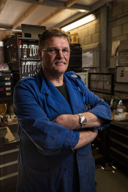 “De afwisseling hier is fantastisch. Die kom je in de burgermaatschappij niet gauw tegen”, verzekert Kater. Hij sleutelt aan alle voertuigen die de marine en de mariniers gebruiken: Vikings, telekranen, waterwagens, bouwmachines, baanveegauto’s, boottrailers, aanhangers en vrachtwagens. Met 40 jaar werkervaring en veel bijscholing is hij een alleskunner als het gaat om autotechniek.