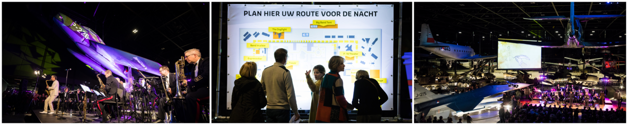Van swingende bigbands via een steelband naar een ingetogen duo op gitaar en fluit. Of zelfs een ‘stil’ concert dat alleen via koptelefoons te beluisteren is. Het was er allemaal tijdens de vierde nacht van de militaire muziek, zoals ieder jaar in de Nationaal Militair Museum. 200 musici, 36 optredens, 7 podia. De 2750 gasten hadden keuze genoeg in het aanbod van alle Nederlandse militaire orkesten.