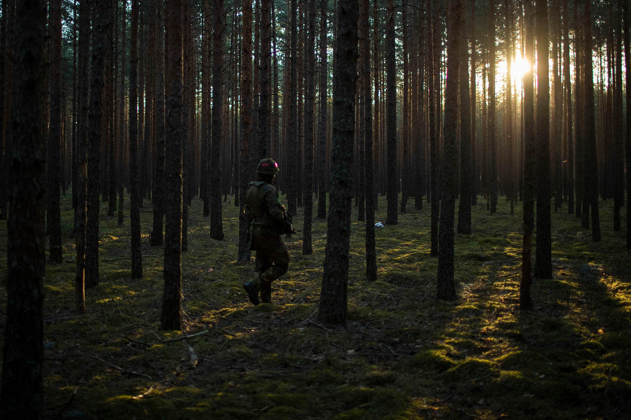 Litouwse bossen lenen zich tijdens de multinationale oefening Saber Strike uitstekend voor een ontspannen verkenning te voet. Foto: korporaal Jasper Verolme.