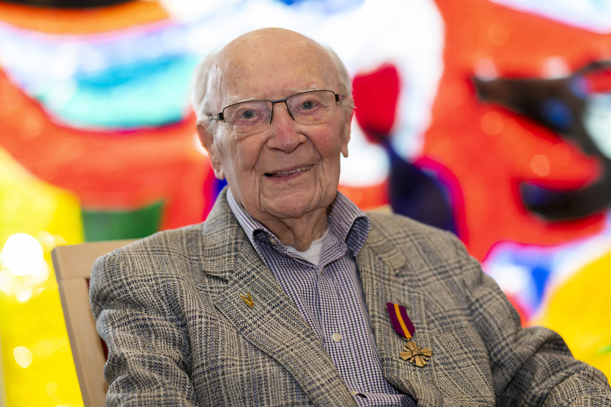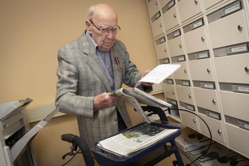 André du Pon staat volop in de aandacht. Voor zijn vele vrijwilligerswerk, tot een paar jaar geleden toe, krijgt hij als oudste Nederlander ooit een Koninklijke onderscheiding. En, niet onbelangrijk vindt hij zelf, het Mobilisatie-Oorlogskruis. “Daarvoor heeft burgemeester van Vlaardingen Annemiek Jetten gezorgd. Ja, we zijn een beetje verliefd op elkaar”, zegt hij met pretoogjes.