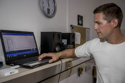 Hoofd Materieelsdienst LTZ 2OC (TD) Jeroen van Dasselaar (36) deed de laatste maanden onderzoek naar het energieverbruik op Savaneta. “Dag en nacht stond de airco aan en soms de ramen erbij open, verouderde verlichting en een paar zonnepanelen waarvan niemand wist of ze het überhaupt wel deden”, vertelt hij.