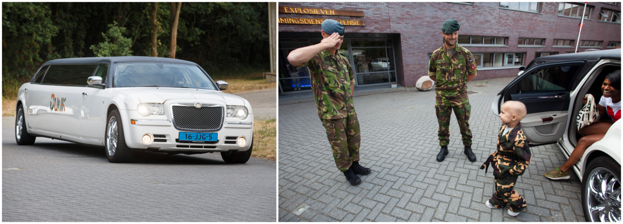 Toen Duuk bij Make-A-Wish mocht aangeven wat zijn grote droom was, hoefde hij er niet lang over na te denken. Vader Joep: “Vanwege het neuroblastoom, een kwaadaardige tumor, wordt Duuk behandeld in het Prinses Maxima Centrum Utrecht. Daar komen ook weleens militairen langs. Duuk was van hen zo onder de indruk dat hij iets wilde doen met ontploffingen, militairen én stoere voertuigen.” En waar kan dat nu beter dan bij de EOD, die jaarlijks 2500 explosieven opspoort en onschadelijk maakt.