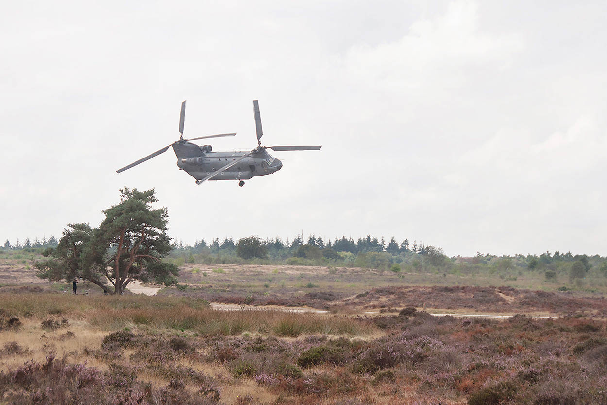 Onlangs oefende de luchtmacht met een Chinook op de Edese heide. Er vond een 'fastrope-training' plaats, maar helaas net buiten de lens van fotograaf Arie van Hensbergen.