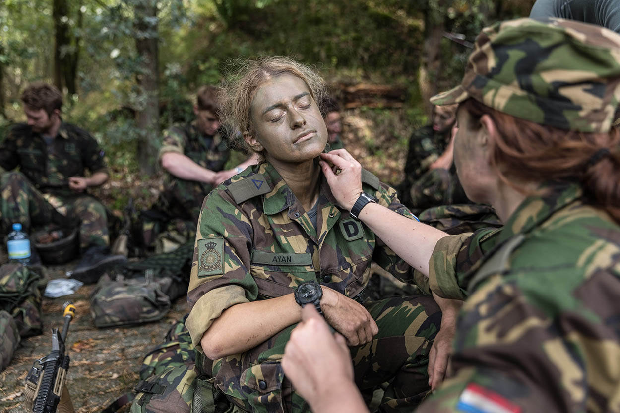 De leerlingen van de Militaire Basisopleiding Luchtmacht tijdens hun eindoefening. Foto: Louis Meulstee.
