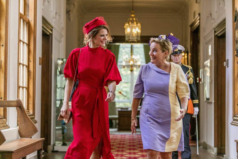Tijd voor het officiële gedeelte. De minister en staatssecretaris vertrekken met hun adjudanten richting de Ridderzaal. De koning zal de minister met zijn Troonrede niet verrassen, maar met de eerste zinnen was ze erg blij; 75 jaar bevrijding is volgens haar een zeer relevant thema.