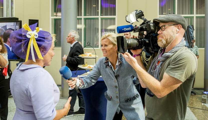 Minister Bijleveld geeft in het gebouw van de Tweede Kamer een interview aan RTV Oost. Ze woont nog steeds in Overijssel en heeft als voormalig Commissaris van de Koning een warme band met de provincie.