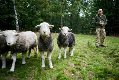 Door schapen geholpen
