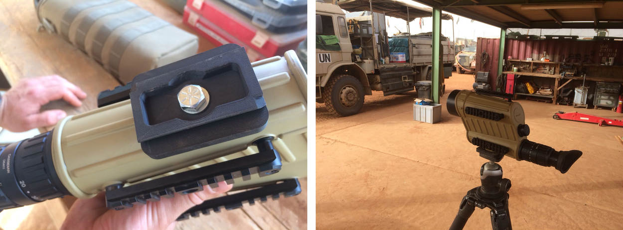 Al sinds 2016 wordt in Mali geëxperimenteerd met 3D-printing. Tientallen voorwerpen rolden al uit de 3D-printer zoals houders voor navigatiesystemen en telefoons, beugels waarmee wapens aan voertuigen bevestigd worden en wieltjes van karretjes waarmee monteurs onder voertuigen ‘glijden'. Door het ruige terrein in Mali slijten die karren harder dan verwacht.