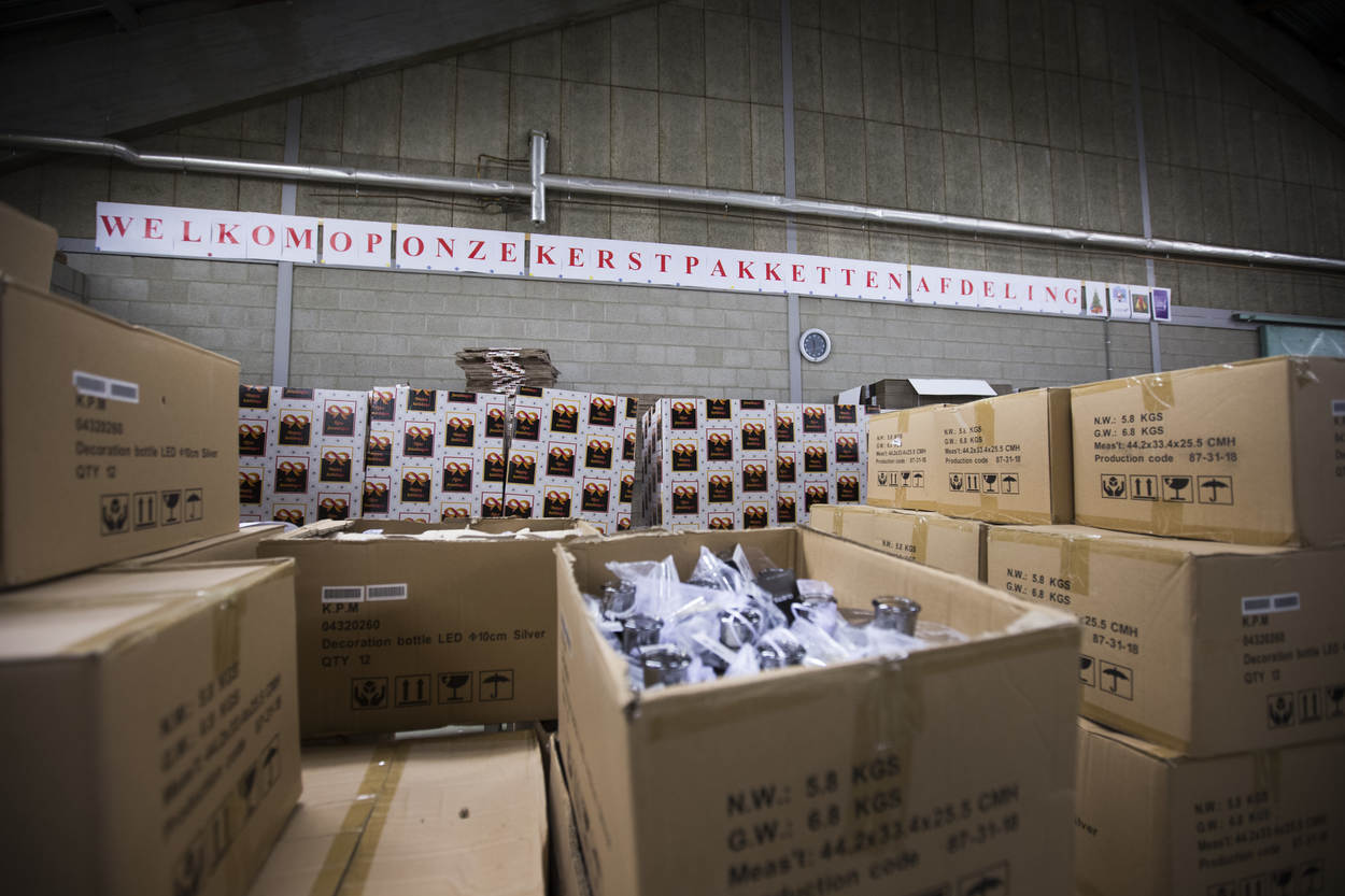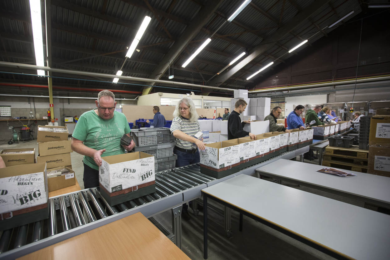 Nieuw dit jaar is dat deze pakketten worden ingepakt met hulp van mensen met een afstand tot de arbeidsmarkt. Dat gebeurt bij het werkbedrijf Scalabor in Arnhem. Tot vorige week pakten zij duizenden pakketten in.