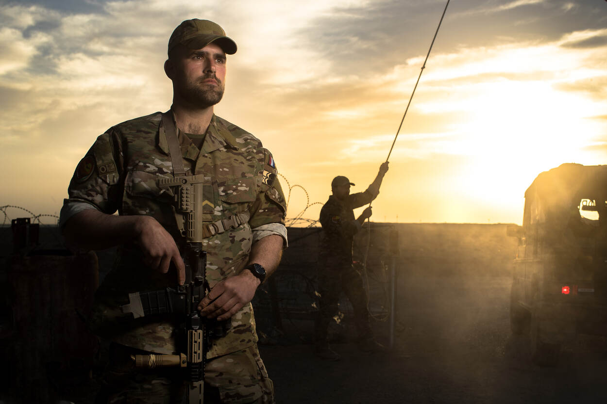 Alles gebeurt onder het toeziend oog van tweede luitenant Debbie, pelotonscommandant Object Grondverdediging (OGRV). Niet meer dan logisch, want de OGRV heeft tientallen jaren ervaring met het bewaken van assets van de luchtmacht. “Bij de Natres zijn ze net als bij ons gewend aan structuur en hiërarchie. Ik vind het mooi te zien dat we tijdens deze missie snel een groep zijn geworden, waarin het teambelang absoluut boven het individuele belang staat en de groepscohesie goed is. Ondanks deze positieve ervaringen met een gemotiveerde club houd ik hier een dubbel gevoel aan over. Het voelt voor mij persoonlijk alsof mijn OGRV-eenheid vervangbaar is.”