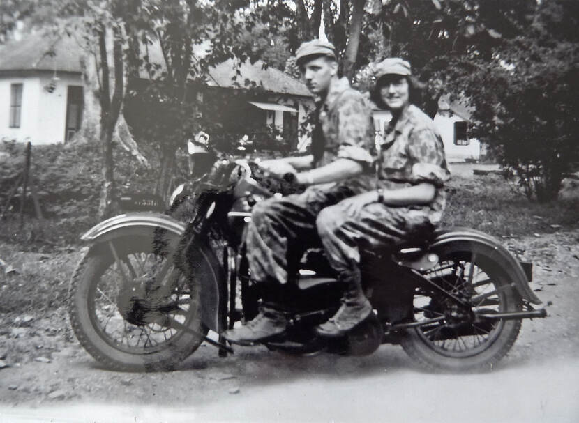 Op 5 mei 1945 meldt Hage-Noël zich in Breda. “Een uur later vertrokken we al richting Engeland. Ik kon geen afscheid meer nemen, dus schreef ik mijn familie een kort briefje: ‘God save the Queen, ik ben weg!’. Dat deed je gewoon, misschien uit een stuk jeugdige onbezonnenheid. En we wilden helpen om voormalig Nederlands-Indië weer op poten zetten.”