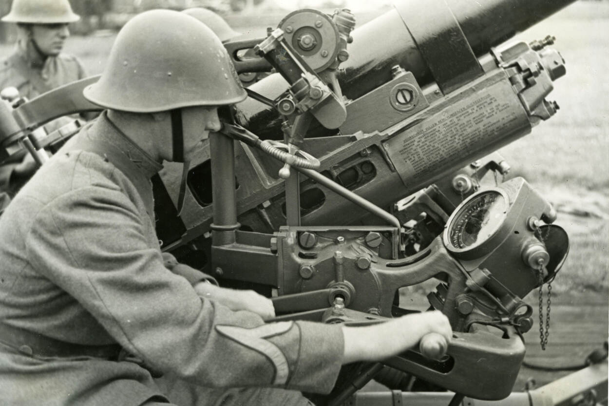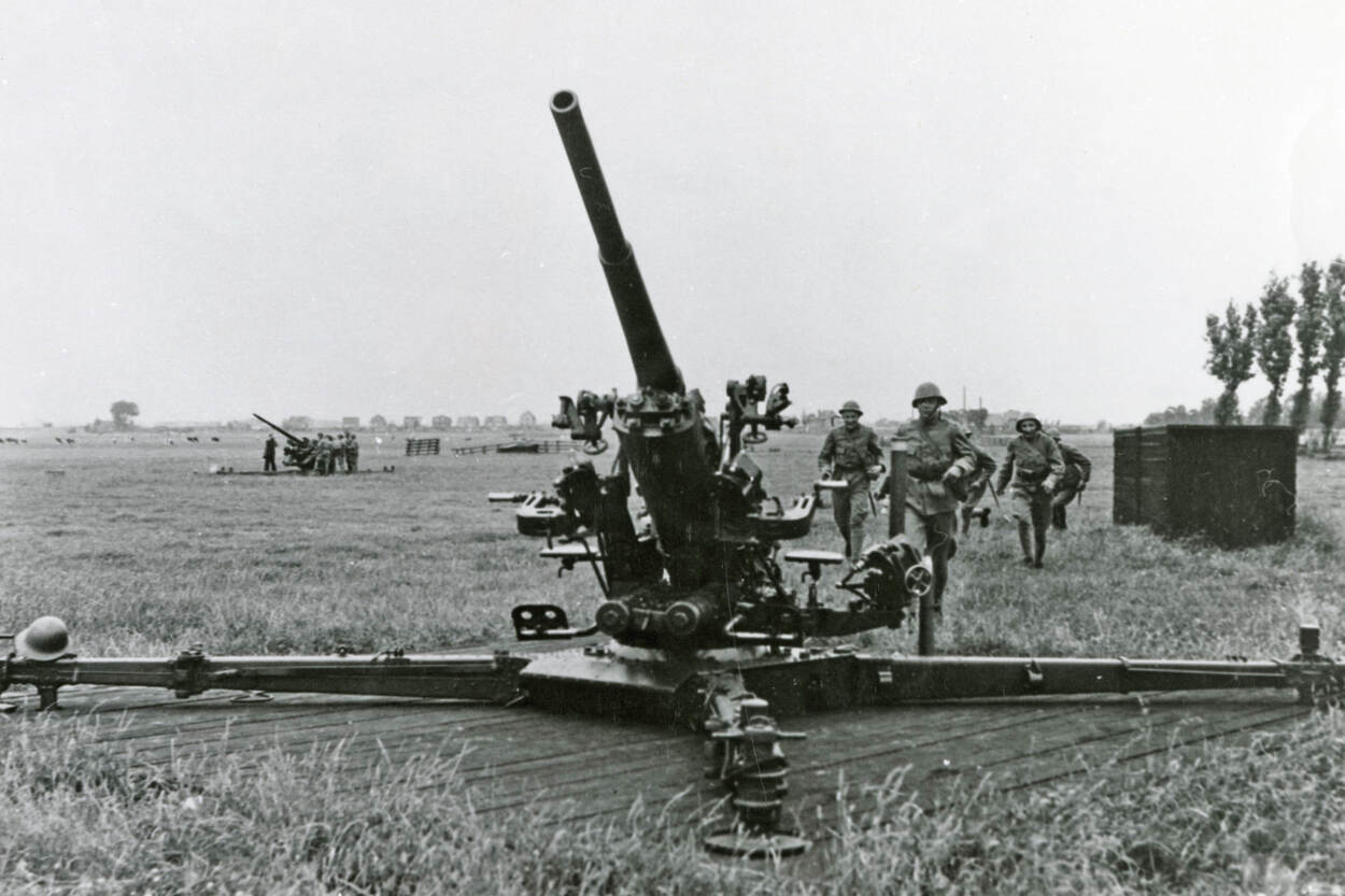 Bewoners rond het militaire vliegveld Ypenburg bij Den Haag denken in de nacht van 10 mei 1940 onweer te horen. Al snel wordt duidelijk dat het om vliegtuiggebrom en bommen gaat. Bij het Park Leeuwenbergh, ten noorden van het vliegveld, verschijnen rond 3.30 uur ‘vliegtuigen van Duitsche nationaliteit’ boven de 13e Batterij Luchtdoelartillerie. Reserve eerste luitenant Du Mee laat zijn mannen de vijand meteen onder vuur nemen. Brandend storten een aantal vliegtuigen neer maar een deel laat zijn bommen op positie vallen. Dienstplichtig korporaal-ziekenverzorger Jan van Oudheusden wekt ondertussen de ploeg die om 8 uur de batterij zou overnemen, deelt aan ieder 5 patronen uit en snelt naar de batterij.