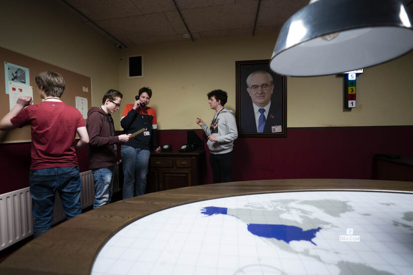 De hufterproof escaperoom, die door kenners wordt bestempeld als ‘pittig’, is een hoogstaand stukje techniek. Inclusief 5 kilometer aan kabel, tal van computers, verborgen ruimten en special effects. Meerdere portacabins zijn aan elkaar gezet, voorzien van een stoer zwart uiterlijk en omgetoverd tot 2 heuse commandoposten. 1 van de Amerikanen. 1 van de Russen. Maximaal 28 personen kunnen tegelijkertijd hetzelfde ‘spel’ spelen: samen het verloop van de Koude Oorlog bepalen. Groepen krijgen 45 minuten de tijd, individuen een uur.