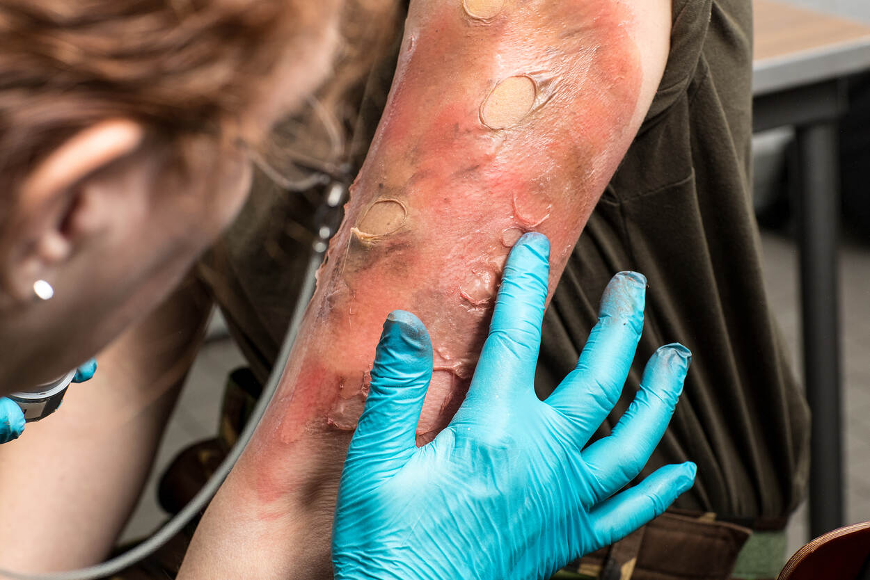 “Zet dat bloed even in de magnetron.” “Met gele haargel kun je een blaar maken.” “Die wond is mooi zeg, doe er nog wel wat ‘dirtspray’ op”. Voor wie de context mist, zijn het ietwat dubieuze uitspraken, maar LOTUS-slachtoffers kijken er niet van op. Als wondenmaker en trainingsacteur zorgen ze voor levensechte oefenscenario’s.