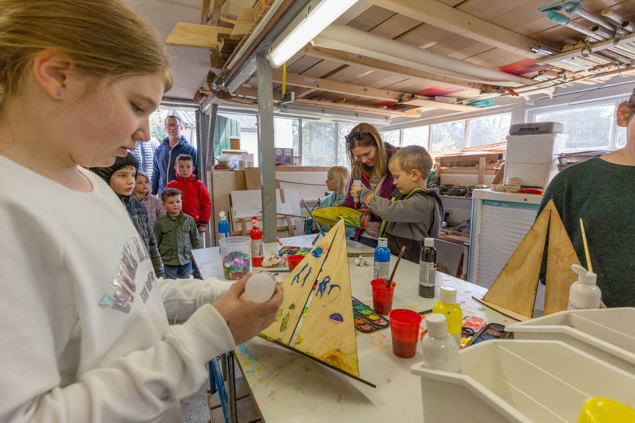 Iemand die je weinig hoeft te vertellen over de geschiedenis van Nederlands-Indië, is Louis Bos. Zijn ouders zaten tijdens de Tweede Wereldoorlog in een Jappenkamp en dat heeft een behoorlijke weerslag op de jeugd van de Bronbeek-vrijwilliger gehad. Vandaag is hij 'docent’ bij het houtzagen en bootjes maken in de kleine werkplaats. “Ik weet goed hoe ik de kinderen op hun niveau moet aanspreken. Als ouders bijvoorbeeld hun kroost op een van de kanonnen zetten, vertel ik daar een verhaal bij.” En dat komt best aan bij Ben (5), die met moeder Marleen even later het bootje te water laat. “Ik heb in Arnhem gestudeerd en weet dus best wat van Bronbeek. Het is mooi om daarvan wat aan Ben door te geven.”