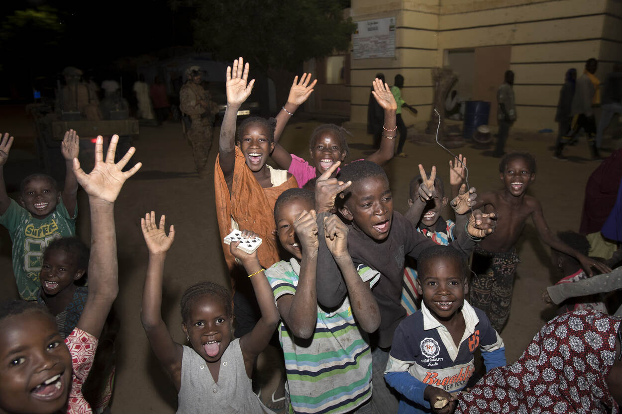 Even verderop staan z’n collega's de toegestroomde kinderen te entertainen. Ondanks het niet meebewegende scherfvest, slaagt korporaal Darryl erin de kleintjes 'hoofd, schouders, knie en teen' aan te leren. Misschien wel een nieuwe hit in de stad. Woestijnzand stuift op als de militairen met evenveel enthousiasme de Afrikaanse danspassen nadoen. En dat Mali net als Nederland een voetballand is, blijkt wel als ze onder de brandende zon in een open veld een balletje trappen. “Deze kids hebben eigenlijk bijna niets nodig om een leuke tijd te hebben”, stelt een bezwete soldaat.