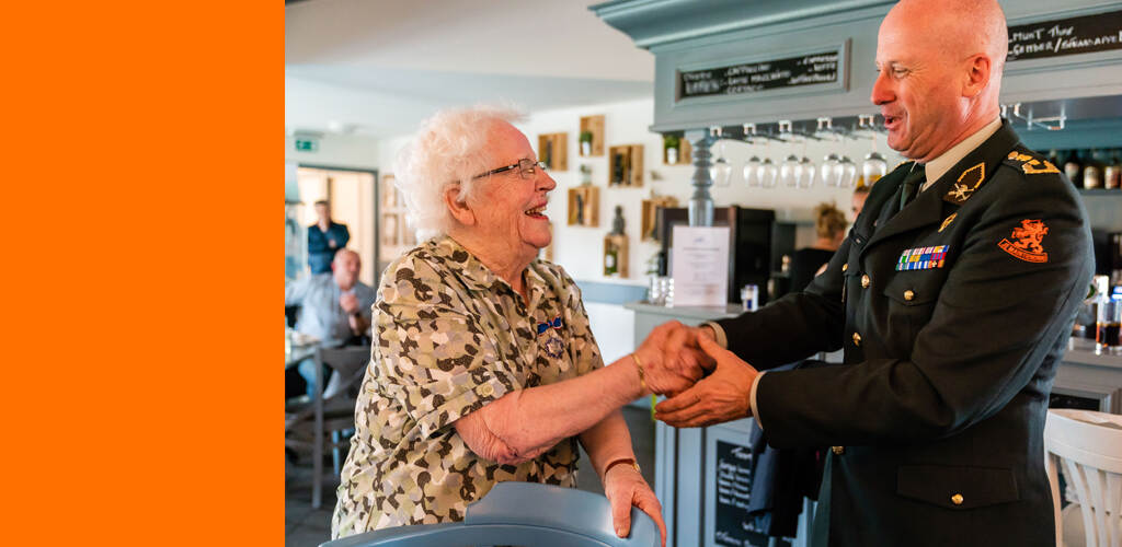 75 jaar geleden tekende de eerste vrouw een contract bij het Vrouwen Hulpkorps (VHK) van de Landmacht. Voor deze verjaardag kwamen zo’n 40 dames bijeen voor een reünie in Zandvoort. Onder hen hét gezicht van de landmachtvrouwen: de inmiddels 85-jarige luitenant-kolonel b.d. Emma Staf. Defensie onderscheidde haar met het ‘Ereteken voor Verdienste in zilver’.
