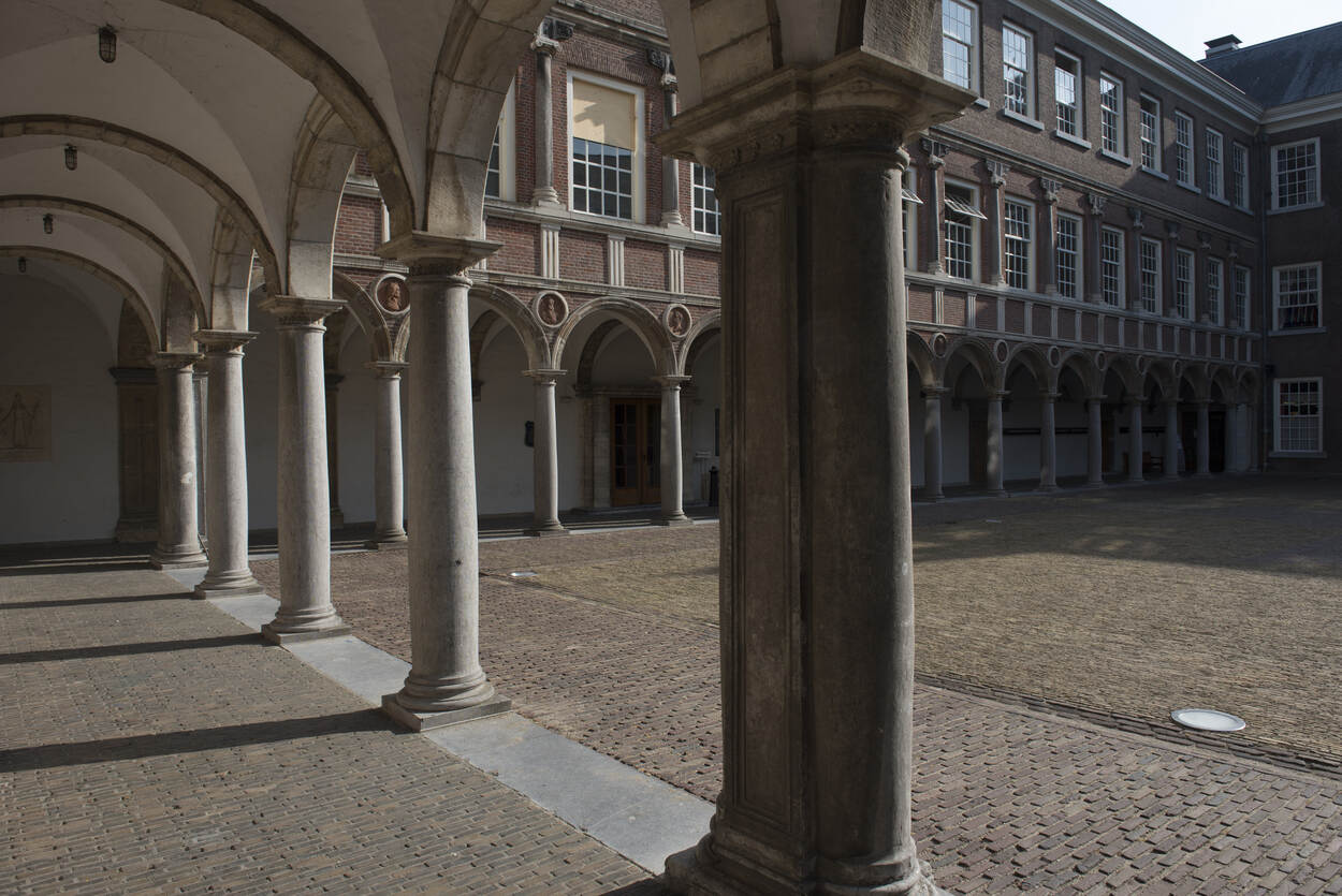 Cherubijnen, oneerbiedig engeltjes sierden de dakkapellen op de binnenplaats. Waar nu de trap richting de ondergrondse Spijkerbar ligt, stond een statietrap getooid met uit steen gehakte dolfijnen. Tussen de bogen zijn nog altijd medaillons te zien van bekende krijgsheren. Ook deze versieringen vinden hun oorsprong in Zuid-Europa. Veel van dit moois verdween na de Franse Revolutie. In 1826 werd het paleis een kazerne en opleidingsinstituut. Bij die functie en tijd hoorde een strenge omgeving. Ook ruimte werd een probleem. Het paleis werd ontdaan van alle franje en op de bestaande structuur kwam een extra 3e verdieping. Nog altijd is het verschil in kleur van de bakstenen zichtbaar.