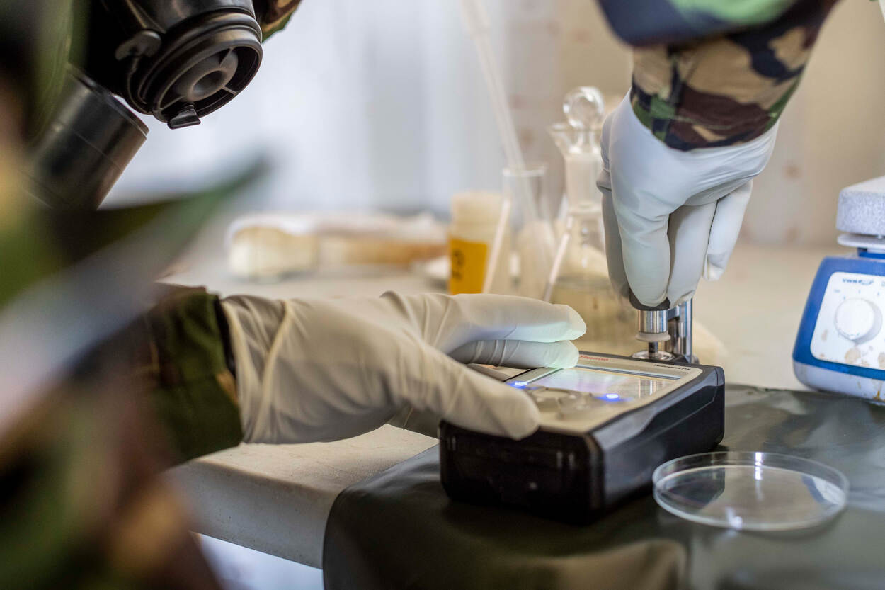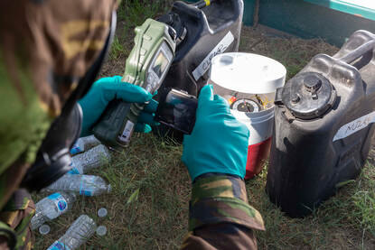 Het liefst nemen de CBRN-verkenners een ‘eindproduct’ mee. Op basis van kennis en wat de meetapparatuur aangeeft, wordt bepaald welke samples meegaan naar het lab.