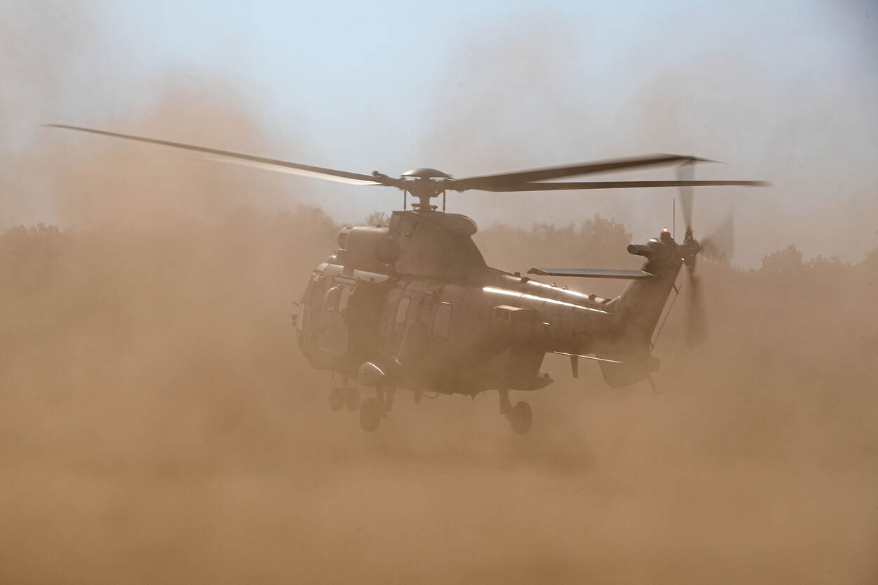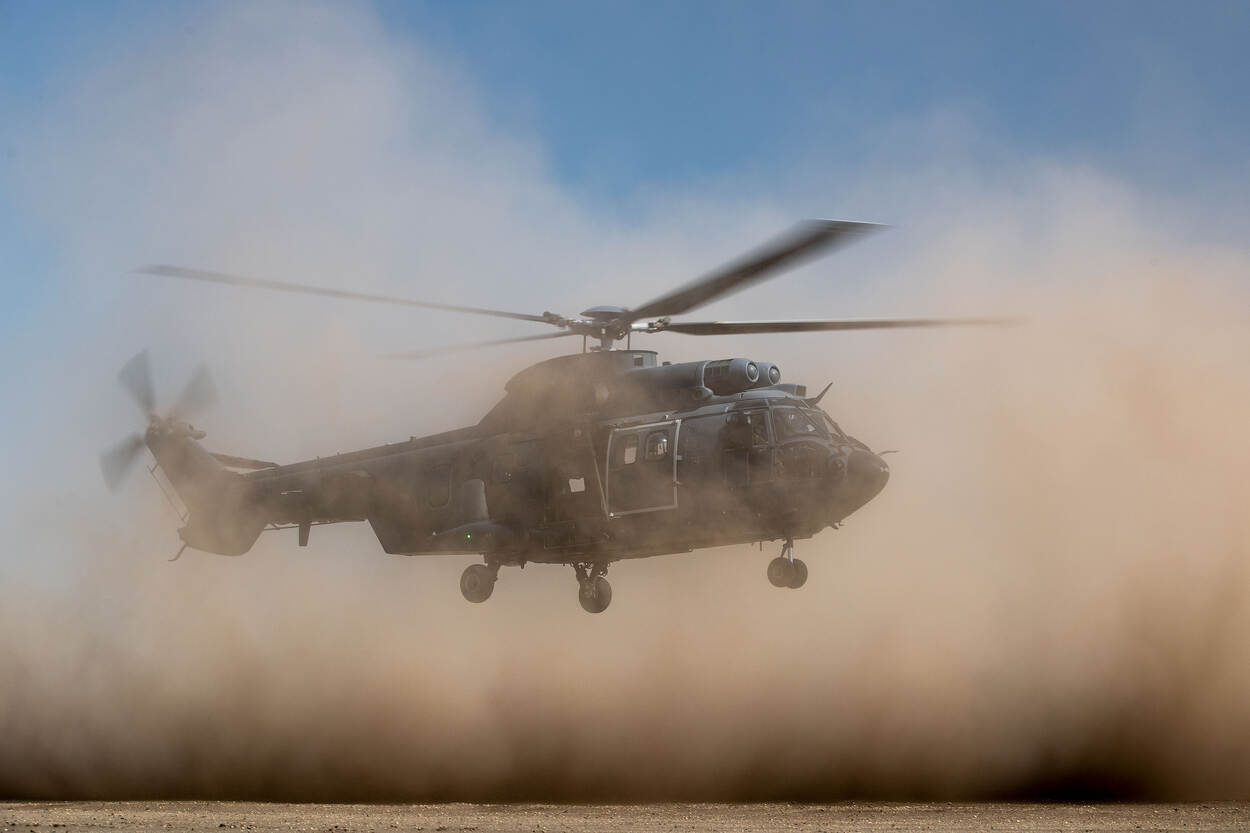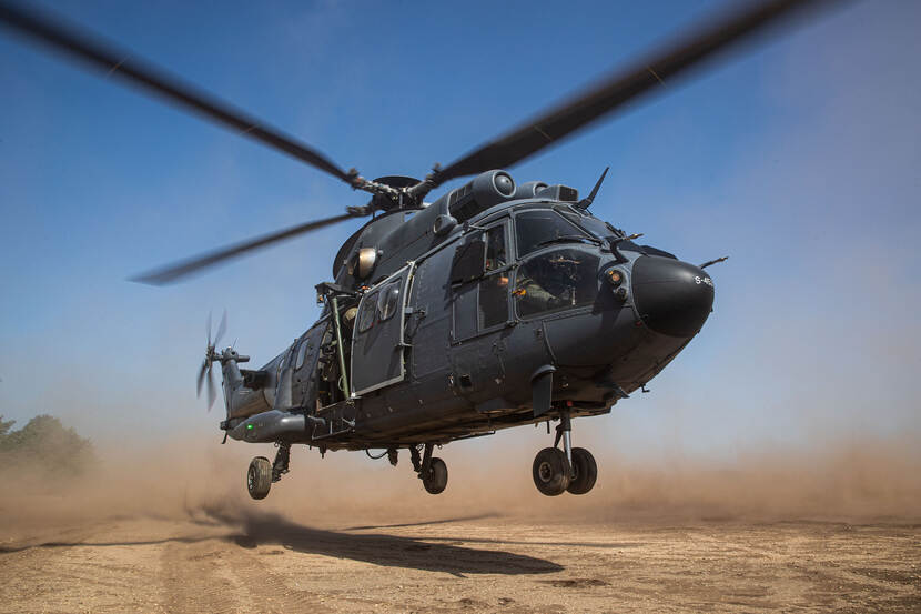 Een van de moeilijkste procedures van het werk van een vlieger werd onlangs door 300 squadron met Cougar-transporthelikopters geoefend op de Leusderheide. De Defensiekrant was erbij.