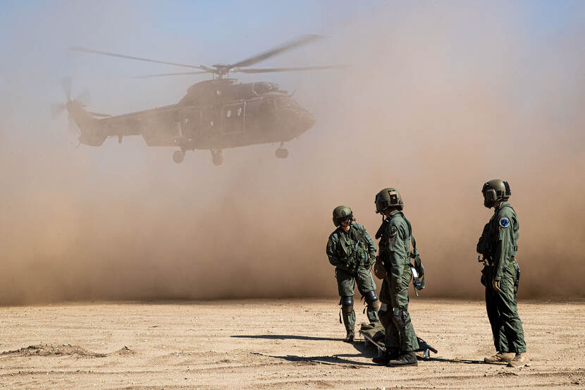 Een oefening als deze wordt eens in de 1 à 2 jaar gedaan. “Omdat we overal moeten kunnen landen, ook op plekken waar zand opstuift. Denk bijvoorbeeld aan Afghanistan”, zegt  Rick. “De procedure in de sneeuw is overigens hetzelfde. De brown-out noemen we dan een white-out.”