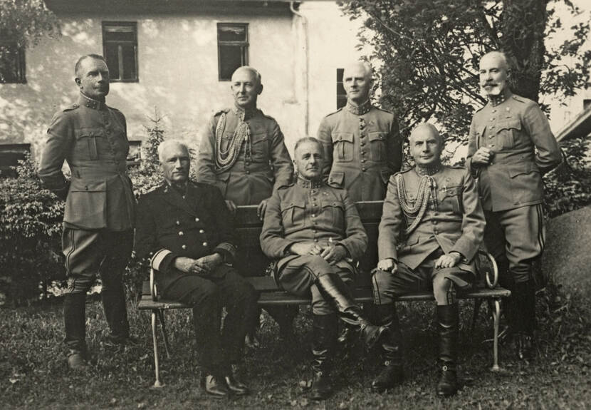 Best, staand tweede van rechts, in 1941 tijdens krijgsgevangenschap in Oflag VIII E Johannisbrun met andere opperofficieren onder wie opperbevelhebber generaal Winkelman, zittend in het midden.