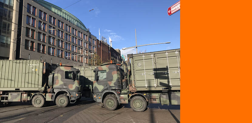 Defensie ondersteunt de gemeente Den Haag woensdag en donderdag bij het handhaven van de veiligheid in het centrum van Den Haag. Om te voorkomen dat boeren met tractors het Binnenhof op rijden, zijn 25 verzwaarde vrachtwagens op 11 cruciale plekken geplaatst als robuuste wegafzetting.