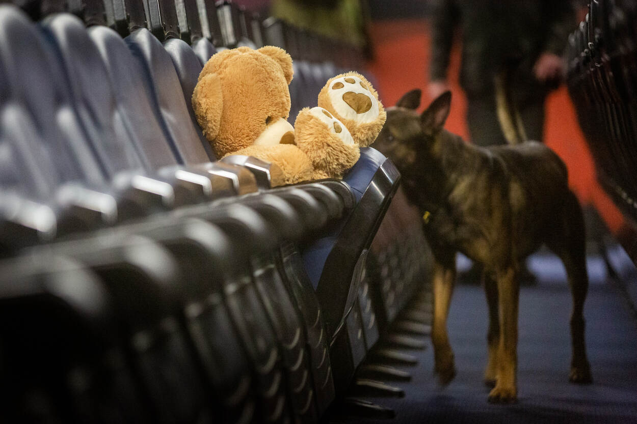 “De ene hond is soms geschikter voor het afzoeken van een bepaalde locatie dan de andere; de dieren hebben zo hun eigenaardigheden”, vertelt Jonk. Voor Xavi telt dat niet per se. Als de rust is wedergekeerd, mag hij weer aan de bak en vindt hij zonder omhaal 4 pakketjes springstof, verstopt in een hoog hangende televisie. “Goed gedaan”, prijst sergeant-1 Patrick de 3-jarige reu. Hij krijgt een knuffel, een aai over zijn bol en mag enkele ogenblikken met zijn balletje spelen.