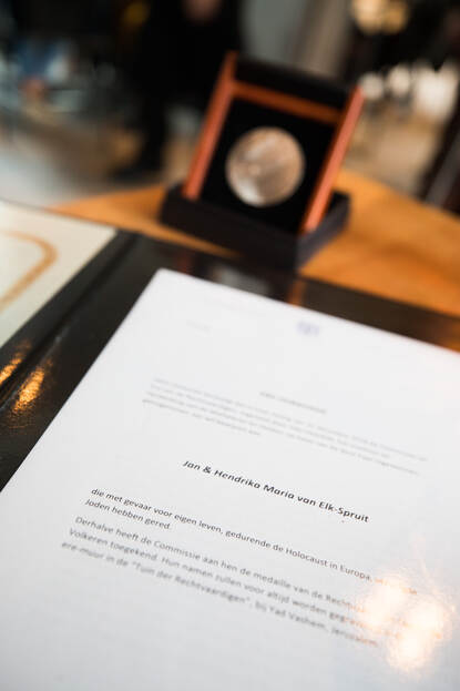 De ultieme erkenning ontving het echtpaar Van Elk op 1 november op het Kasteel van Woerden. Tijdens een indrukwekkende met muziek omlijste plechtigheid reikte de Israëlisch ambassadeur Naor Gillon postuum de Yad Vashem-onderscheiding uit aan Jan én Marie. De hoge onderscheiding wordt toegekend aan mensen die Joden hebben gered, onder meer tijdens de Holocaust.